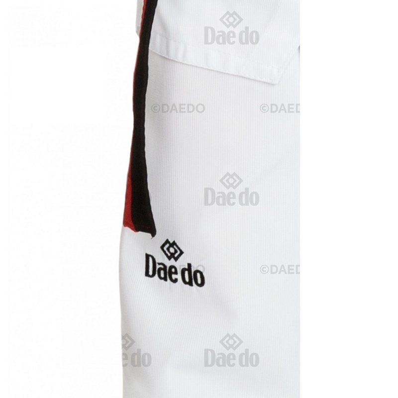 Chaqueta cuello rojo y negro. TAEKWONDO bordado en la espalda. Pantalón con cintura elástica
