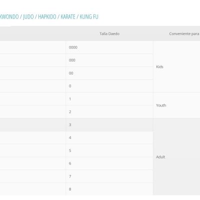 | Tamaño | 100, 110, 120, 130, 140, 150 |